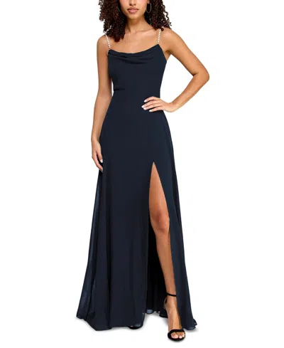 Juniors' Drape-neck Faux-peal-strap Gown In Blue