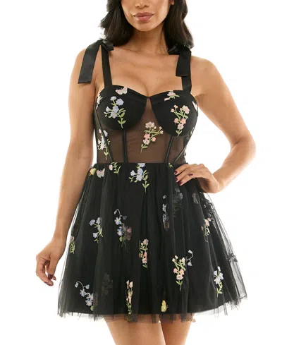 Juniors' Embroidered Tulle Mesh Sleeveless Dress In Blk,pink