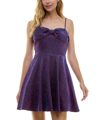 Juniors' Glitter Sleeveless Fit & Flare Mini Dress In Purple