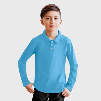 Kids' Boys 100% Cotton Soft Knit Jersey 2-button Long Sleeve Polo Shirt In Blue