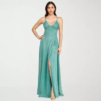 Womens Juniors Sleeveless Glitter Bodycon Dress In Green
