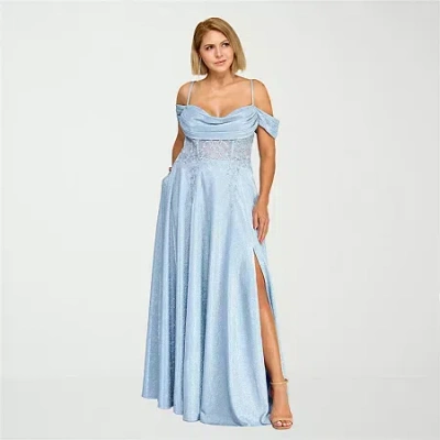 Womens Juniors Plus Sequin Ball Gown In Blue