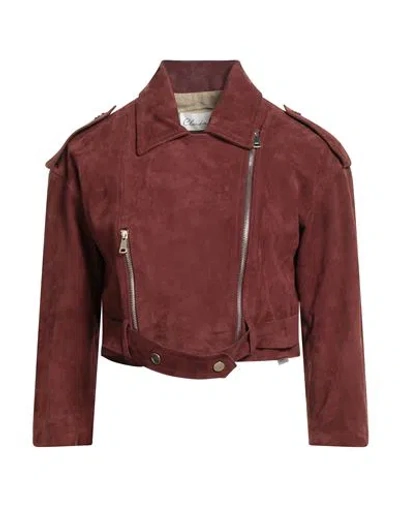 Woman Jacket Brown Size 6 Leather In Burgundy