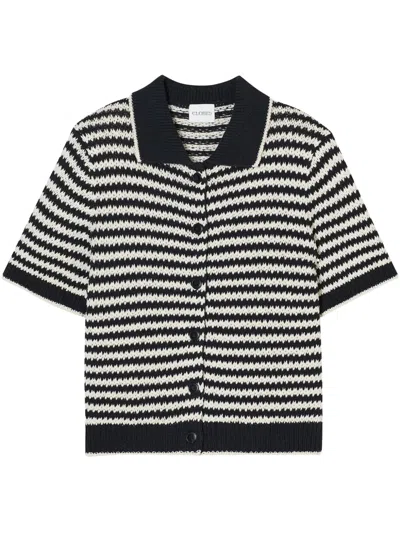 Stripe Short Sleeve Cardigan In Racquet Court Green In Multi