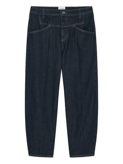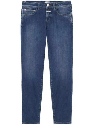 Pedal Pusher High Waist Tapered Leg Jeans In Mid Blue