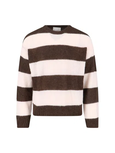 Beige-striped Brown Alpaca-wool Sweater With Ribbed Finishes In Multi