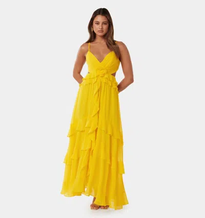 Pre-owned Yellow Ruffle Chiffon Frill Detail Ruffle Maxi Dress