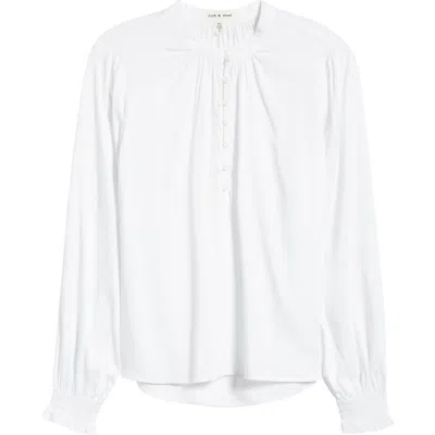 Long Sleeve Popover Top In White
