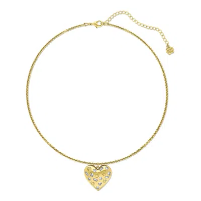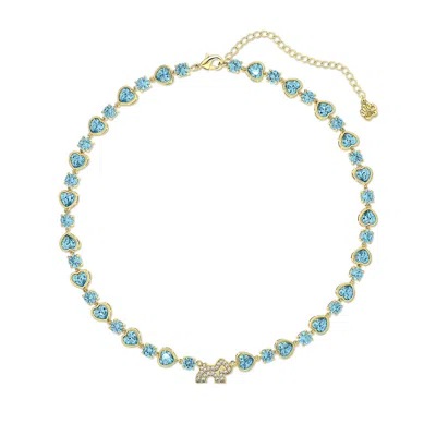 Women's Blue / Gold Heart Crystal Logo Necklace Blue