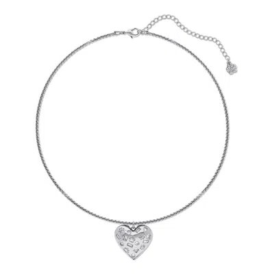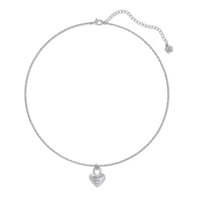 Women's Devoted Puff Heart Necklace Silver In Metallic