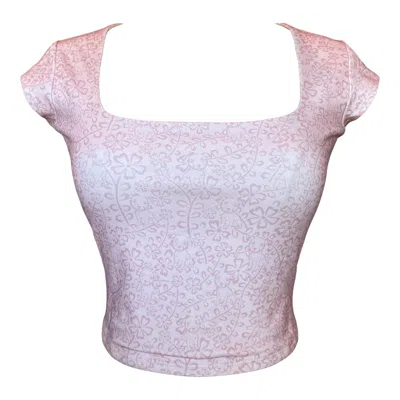 Women's Pink / Purple Jacquard Square Neck Tee In Baby Pink In Pink/purple