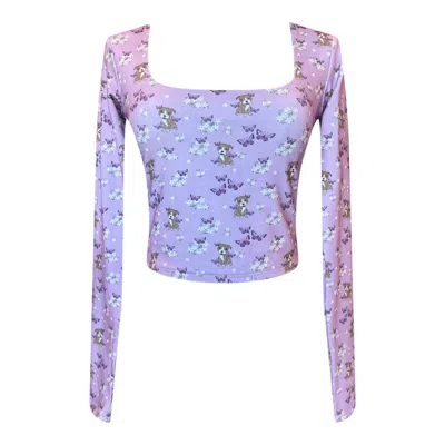 Women's Pink / Purple Long Sleeve Rainbow Dog Printed Tee In Pink In Pink/purple