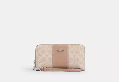 Long Zip Around Wallet In Signature Canvas With Stripe In Beige