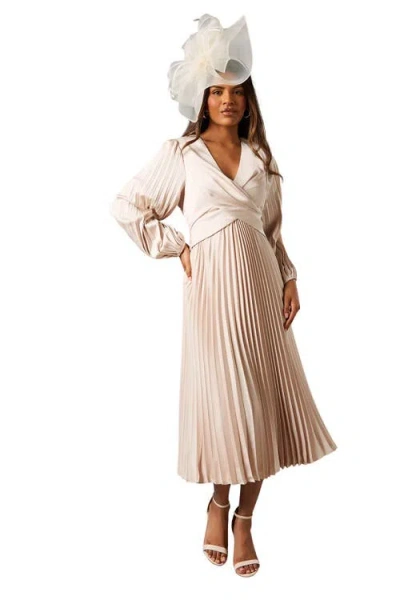 Long Sleeve Pleated Midi Dress In Multi