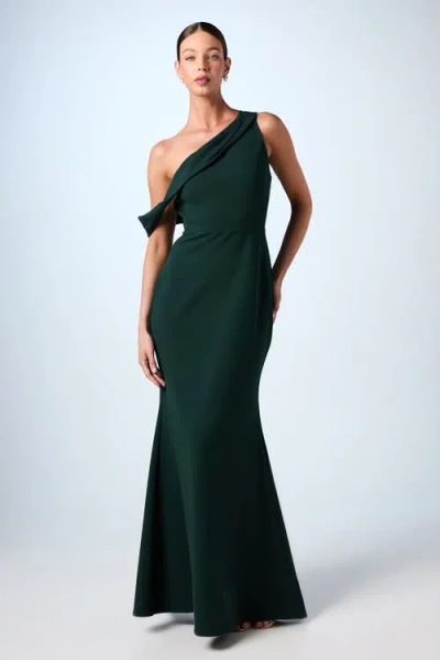 One Shoulder Crepe Ruffle Midi Dress In Blue