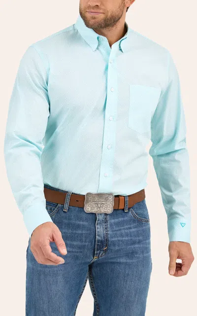 Men's Aqua Geo Print Long Sleeve Western Shirt In Blue