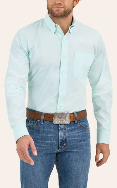 Men's Seafoam Pinstripe Long Sleeve Western Shirt In Blue