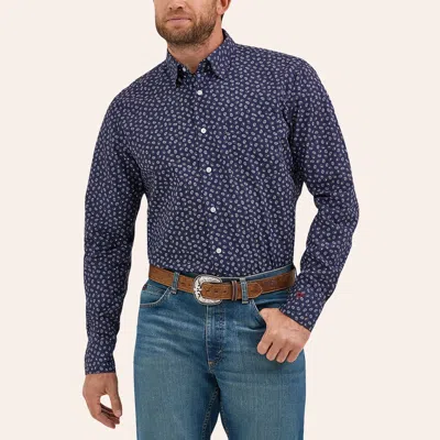 Navy & White Mini Paisley Print Button Down Shirt In Blue