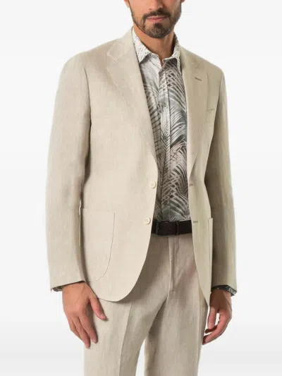 Single-breasted Linen Blazer In Neutral