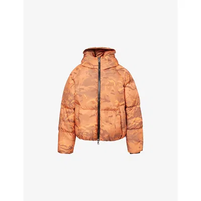 Mens Orange Camouflage-pattern Hooded Shell-down Jacket Xl In Brown