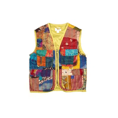 Women's White / Gold Crochet Mirror Work Vest In Multi