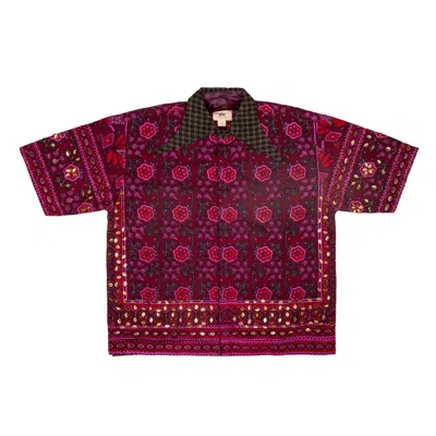 Men's Pink / Purple Long Collar Ajrak Block Print Shirt In Pink/purple