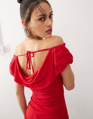 Off The Shoulder Long Sleeve Ruched Top In Red