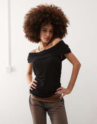 Off The Shoulder Fold Over Top In Black