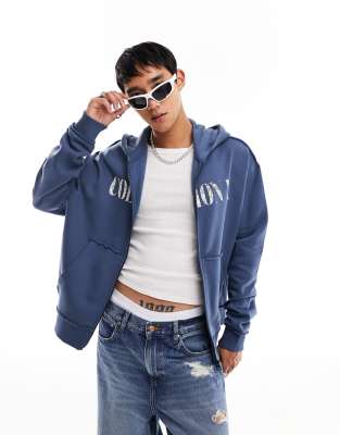 Zip Up Logo Hoodie In Blue