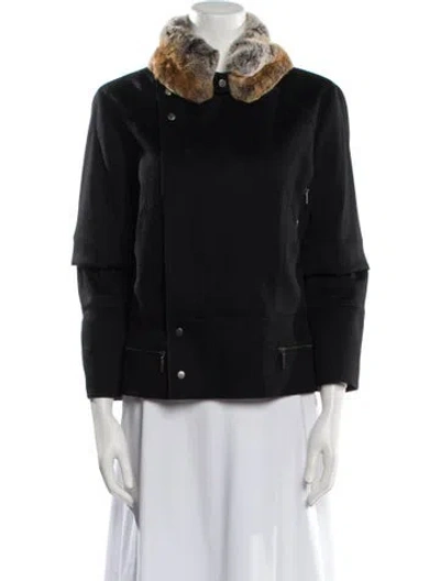 Pre-owned Linen Faux Fur Jacket In Black