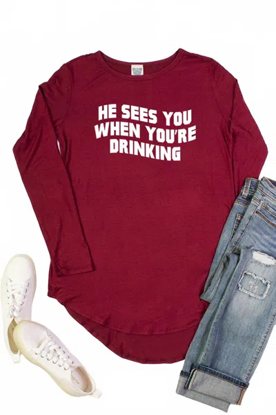 Women's He Sees You Drinking In Burgundy