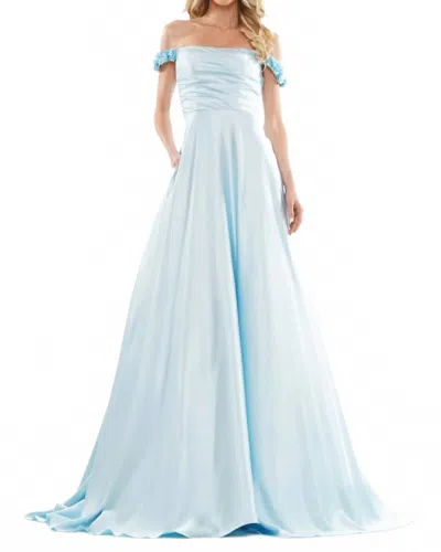 Long Metallic Glitter Off Shoulder Gown In Lilac Multi In Purple