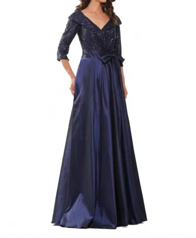Sheer 3/4 Sleeve Mermaid Gown In Navy In Blue