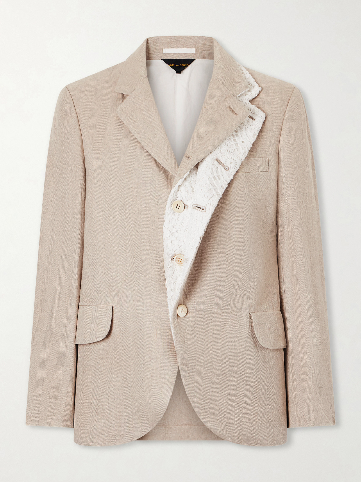 Comme des Garçons, French for "Like Boys" and written in Japanese as コム・デ・ギャルソン (Komu de Gyaruson), is a Japanese fashion label headed by Rei Kawakubo, who owns the company with her husband Adrian Joffe.