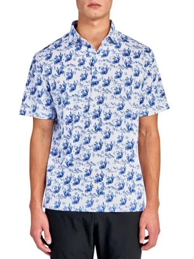 Con.struct Micro Floral Print Performance Golf Polo In White/blue