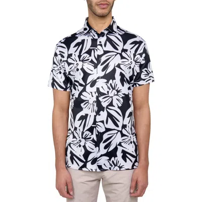 Con.struct Exploded Floral Print Performance Button-down Shirt In Black/white