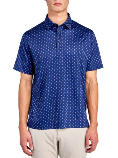 Con.struct Floral Geo Motif Print Performance Golf Polo In Navy