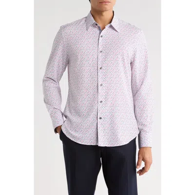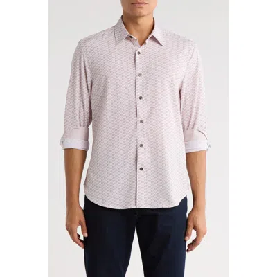 Slim Fit Abstract Geo Print Stretch Button-up Shirt In Pink