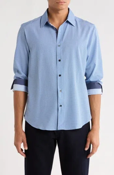 Slim Fit Micro Geometric 4-way Stretch Performance Button-up Shirt In Blue