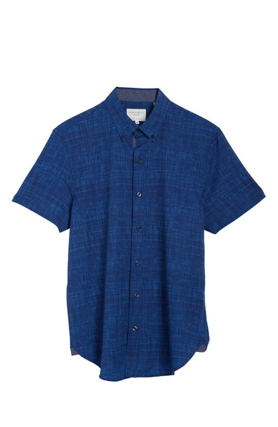 Slim Fit 4-way Stretch Short Sleeve Button-up Shirt In Blue