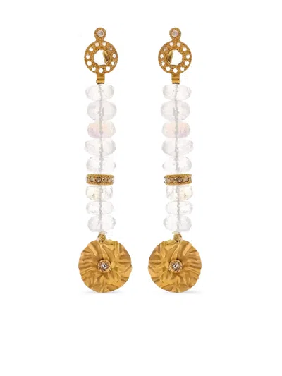 Yellow Gold Beaded Drop Diamond And Moonstone Earrings
