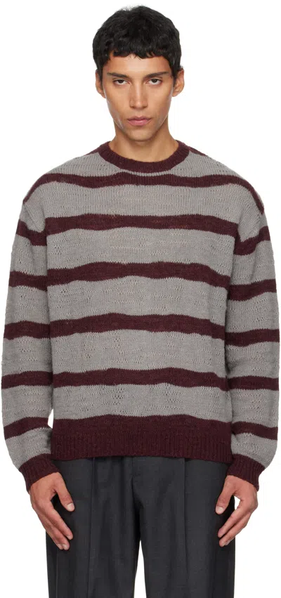 Grey Crew Neck Sweater With All-over Striped Motif In Wool Blend Man In Gray