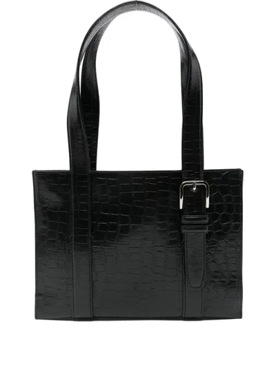 Crocodile-embossed Shoulder Bag In Black