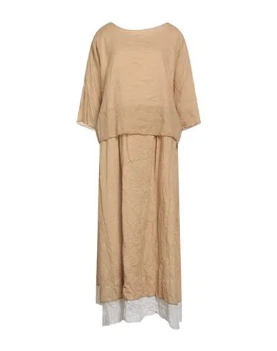 Woman Midi Dress Sand Size L Cotton In Neutral