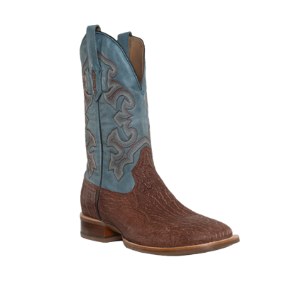 Pre-owned Men's Embroidered Honey Brown & Shark Blue Square Toe Boots A4421