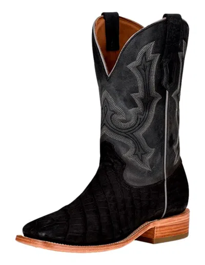 Pre-owned Men's Black And Grey Alligator Square Toe Boot A3084 In Gray