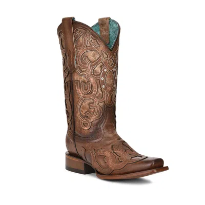 Pre-owned ® Ladies Distressed Glitter Inlay Brown Western Boots A4346