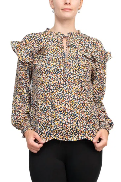 Crew Tie Neck Elastic Cuff Ruffle Chiffon Top In Teal Cove In Multi