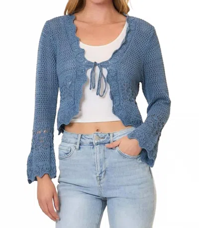 Crochet Knit Front Tie Cardigan Sweater In Denim Blue
