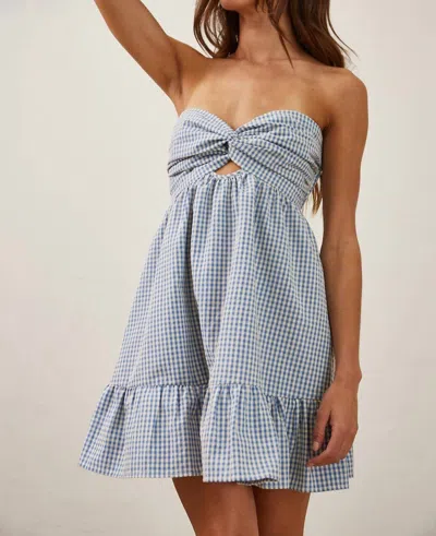 Gingham Mini Dress In Blue In Gray